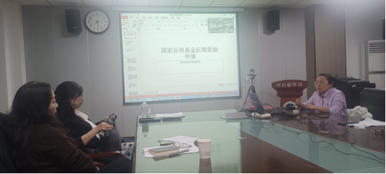 会议第四项,支部书记王卓作题为《国家社科基金后期资助申请经验分享》的经验分享会,主要从申请人资格审查、申报书撰写、申请流程与结项要求等方面做出指导,并与各位申报人就选题、申报材料准备、申项目结项等相关问题展开讨论
