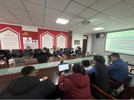 会议第一项听取2026年度国社科项目申报人依次汇报选题,重点阐述选题依据、研究价值及初步论证思路。第二项,由冯璐璐、牛新春、冯燚、周丽娅、王卓、宋保军、刘东宁、独乐、梁道远等党员共同组成专项攻关小组,开展一对一指导,围绕选题的国家战略定位、价值导向、论证框架构建、团队组建及申报方向选择等核心要素提出专业化建议。