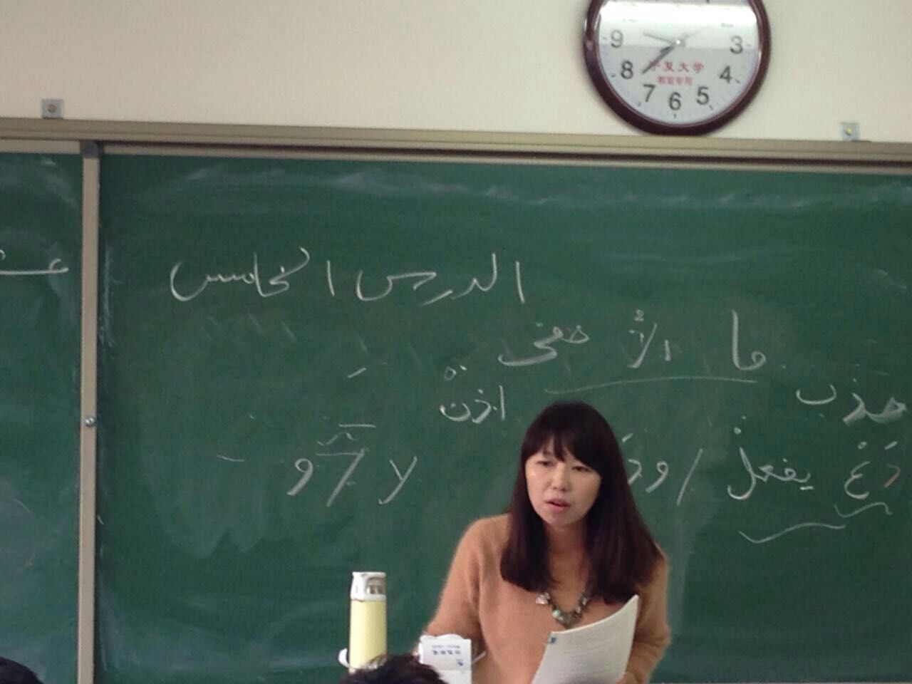 第一堂课由丁萍老师和王艳老师主讲,时间是上午第二小节课,地点在贺兰山校区1教d103教室,主讲课程是基础阿语Ⅱ。在课堂上,丁萍老师授课节奏紧凑,授课内容丰富,课堂整体感染力极好。王艳老师在授课过程中,师生积极互动,拓展了同学们的自主学习能力,一边讲授新的知识点一边复习旧知识点,授课方式特色明了。