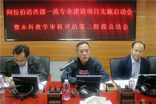 在学院报告厅召开阿拉伯语西部一流专业建设项目实施启动会暨本科教学审核评估第二阶段总结会。校教务处副处长任磊老师,学院党总支书记张前进老师,学院常务副院长金忠杰老师,学院党总支副书记王彦仓老师,学院学生工作办公室主任马生忠老师及学院全体教师出席本次会议,会议由学院副院长白楠老师主持。