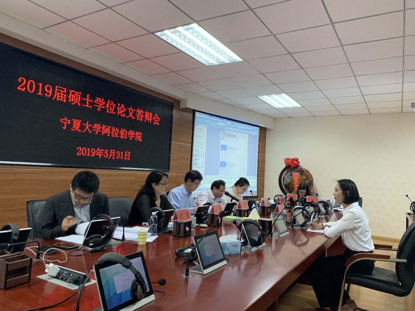 答辩活动以学生自述、评委提问点评、学生作答三个环节展开。参加答辩的4位研究生通过PPT分别就自己论文的选题意义、学术思想、国内外研究现状及主要内容等向答辩组各评委进行了认真、细致的汇报。