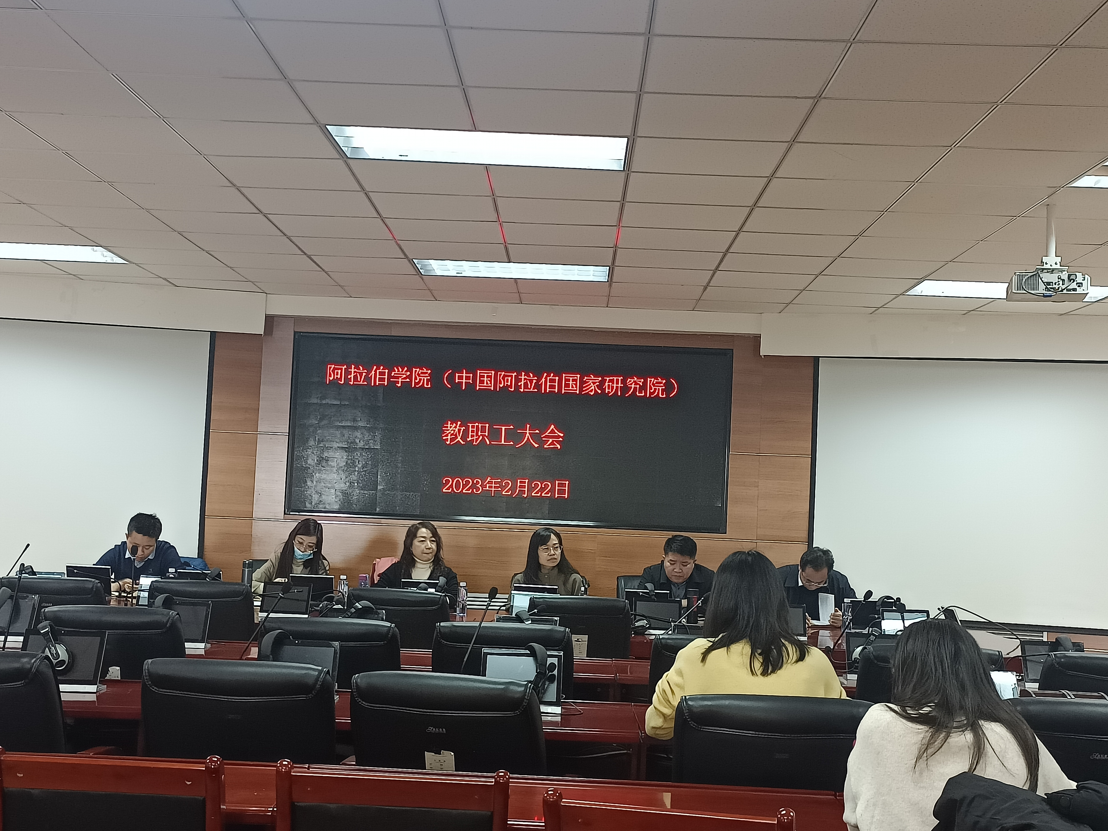 于知行楼八楼报告厅召开2023年春季学期教职工工作部署大会,学院领导及全体教职工参加会议。会议由党总支书记李海燕主持。