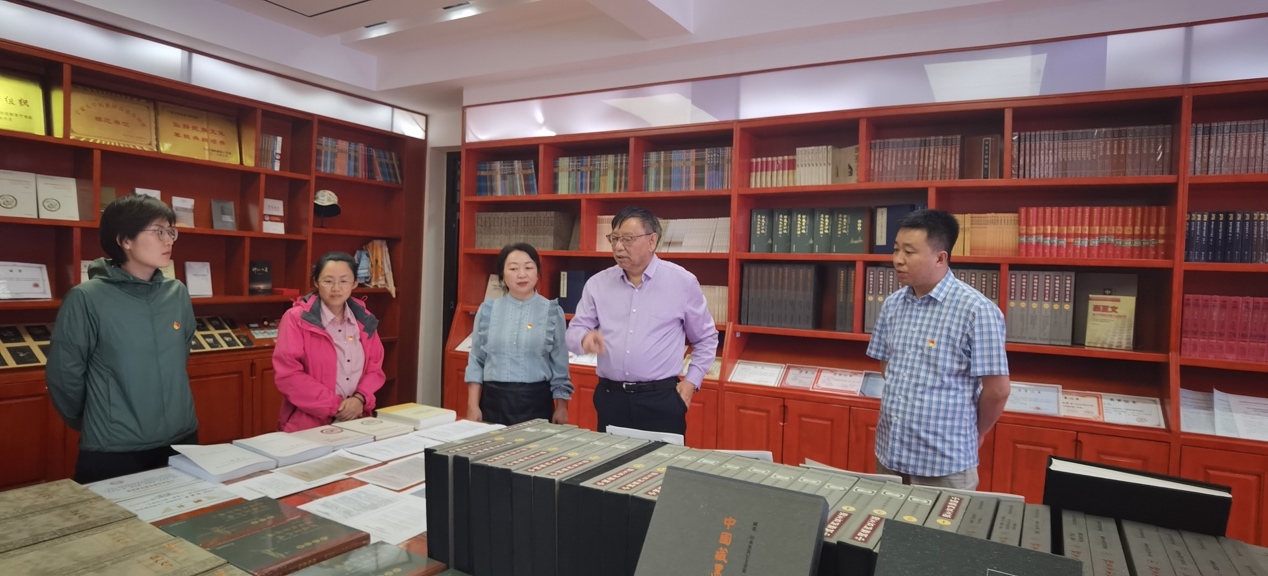 全体党员参观西夏研究院文献资料中心。杜建录教授为党员们讲解西夏研究院建院发展历程及成果成就