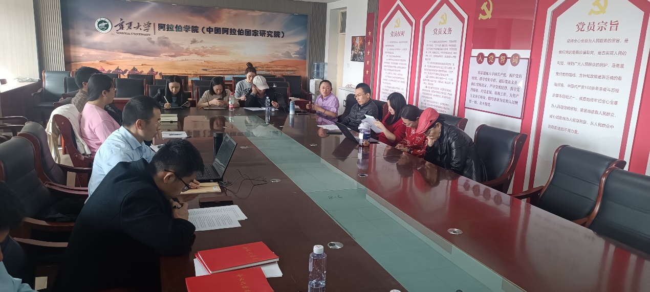 (中国阿拉伯国家研究院)在怀远校区怀远楼816室召开教职工党支部联合大会,王卓书记主持会议,两院全体党员教职工出席会议。