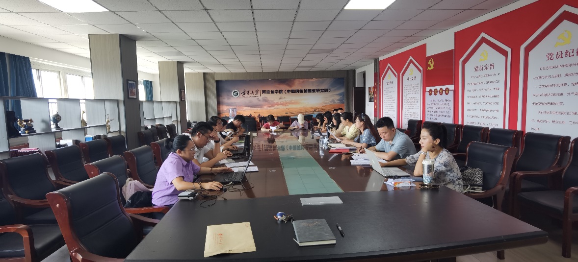 (中国阿拉伯国家研究院)在怀远校区怀远楼816室召开全体教职工大会,由冯璐璐书记主持。