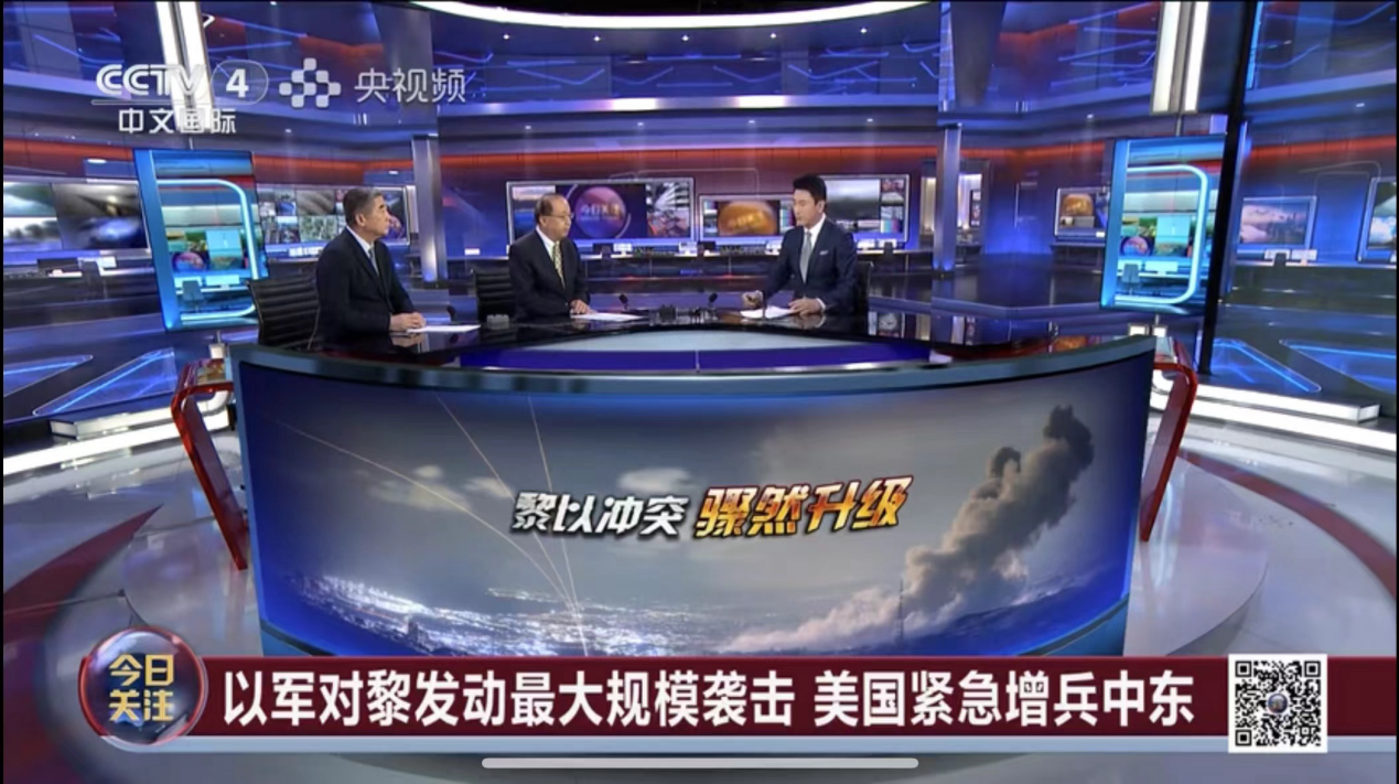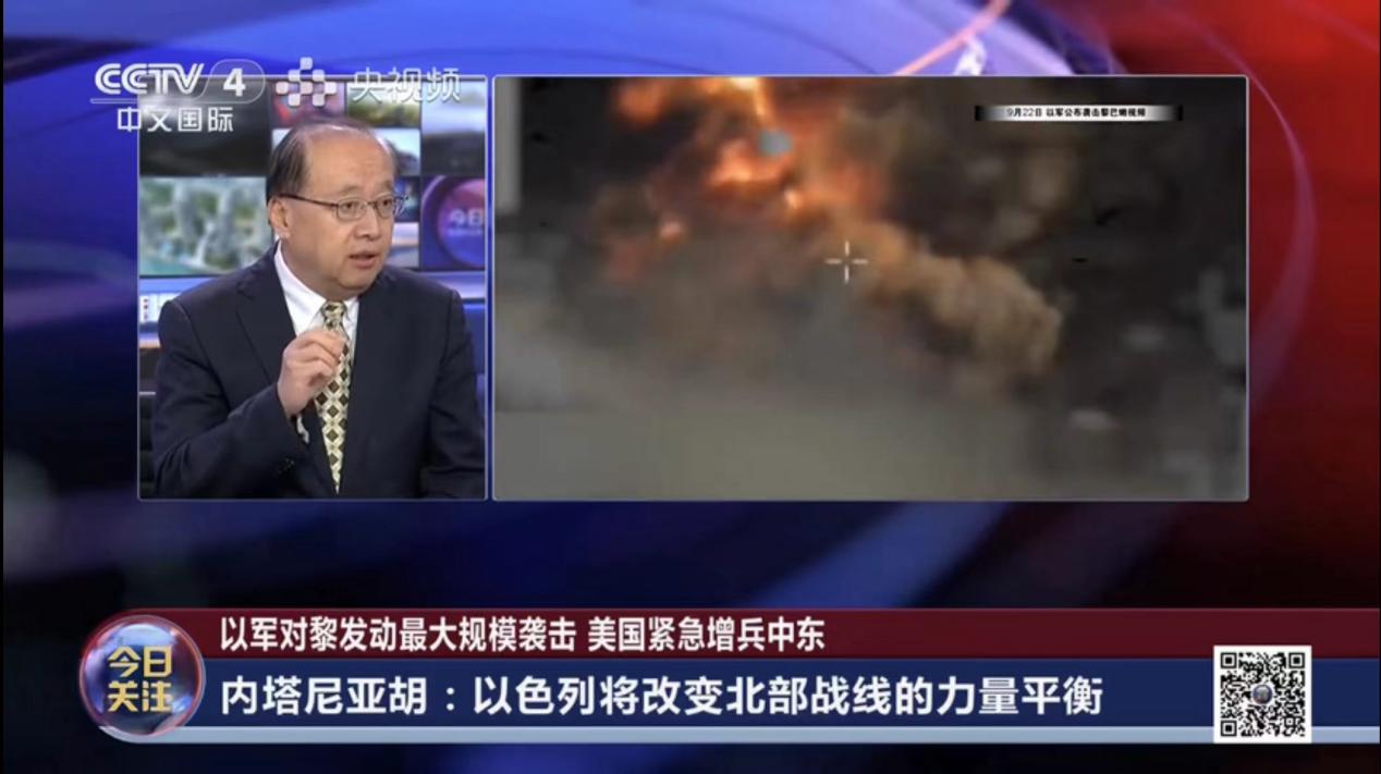 2023年9月24日,吃瓜视频 院长、中国中东学会顾问、教育部国别与区域研究专家委员会委员、中阿博览会顾问委员会主任委员李绍先应CCTV-4《今日关注》栏目邀请参加访谈,就黎以局势进行了评论和解读。