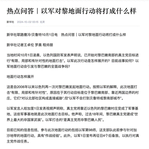 二、2024年10月3日接受新华网采访,题目为《以军对黎地面行动将打成什么样》