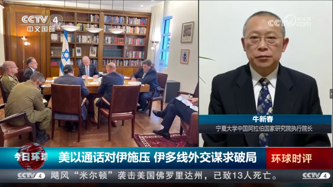吃瓜视频 学术副校长、中国阿拉伯国家研究院执行院长,中国中东学会副会长、中国人民外交学会理事牛新春教授应邀参加了中国社会科学院和平发展研究所“当前突出的战略风险”研讨会、中联部金砖国家智库联盟会议;应国务院国资委邀请做了关于国际形势的学术报告;并接受了央视四频道《今日亚洲》、国际广播电台《环球资讯》等栏目的采访和访谈,就伊以局势及趋势进行了分析和解读。