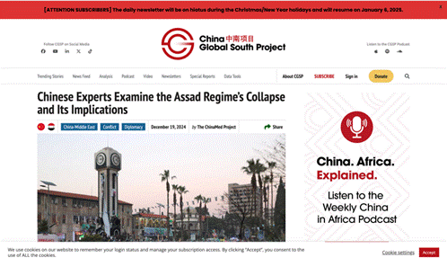 十五、12月19日China Global South Project(中南项目)特稿《Chinese Experts Examine the Assad Regime’s Collapse and Its Implications》一文引用了牛校长的观点