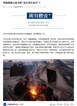 八、2月19日牛校长在《中国新闻周刊》公众号发表题为《特朗普能让哈马斯“自己消灭自己”?》文章