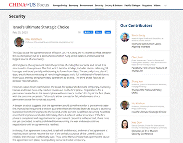 十二、2月20日牛校长在《CHINA and US Focus》上发表题为《Israels Ultimate Strategic Choice》文章