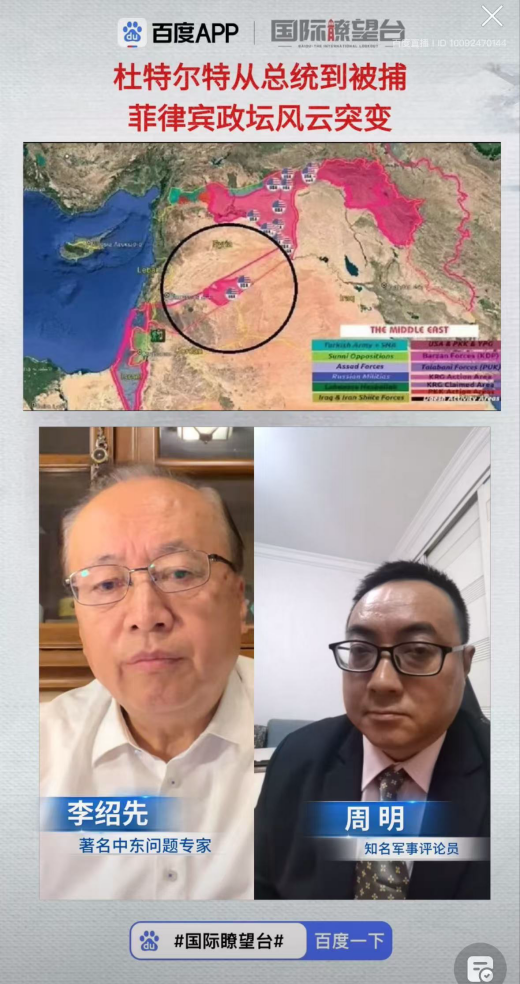 2025年3月13日-3月16日,吃瓜视频 院长、中国中东学会顾问、教育部国别与区域研究专家委员会委员、中阿博览会顾问委员会主任委员李绍先就中东局势,接受中央电视台、凤凰卫视、百度app《国际瞭望台》直播节目采访,就当前局势及趋势进行了分析和解读,并在国防大学国际防务学院为第49期防务与战略研究班授课。