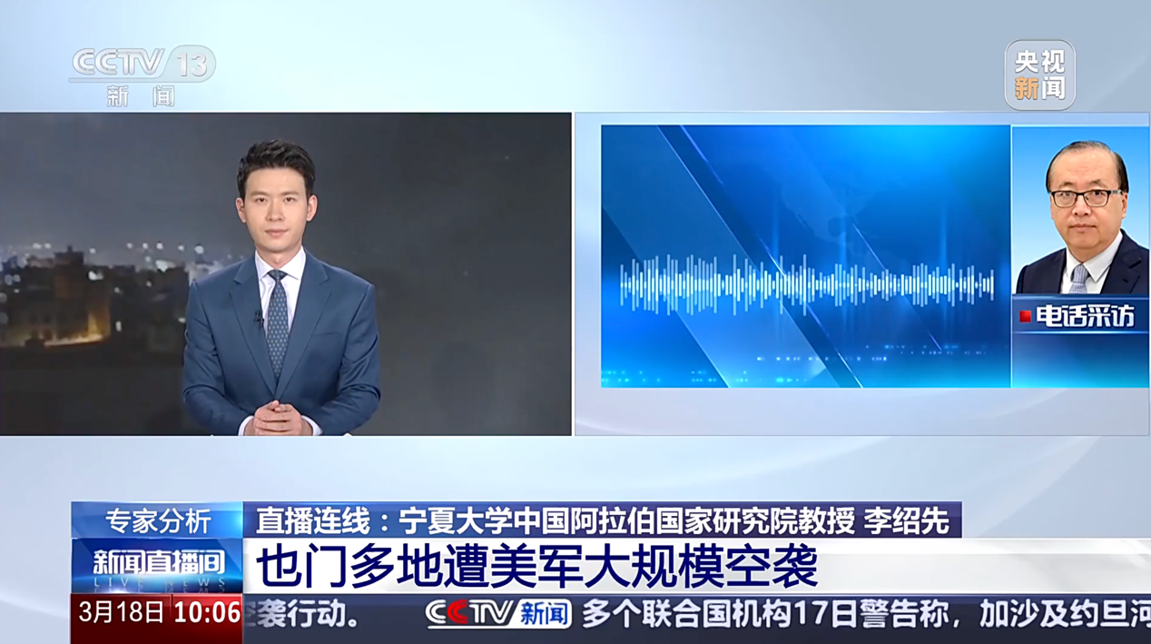 2025年3月17日至20日,吃瓜视频 院长、中国中东学会顾问、教育部国别与区域研究专家委员会委员、中阿博览会顾问委员会主任委员李绍先接受了中央电视台、凤凰卫视等主流媒体的采访,就当前局势进行了分析和解读。
