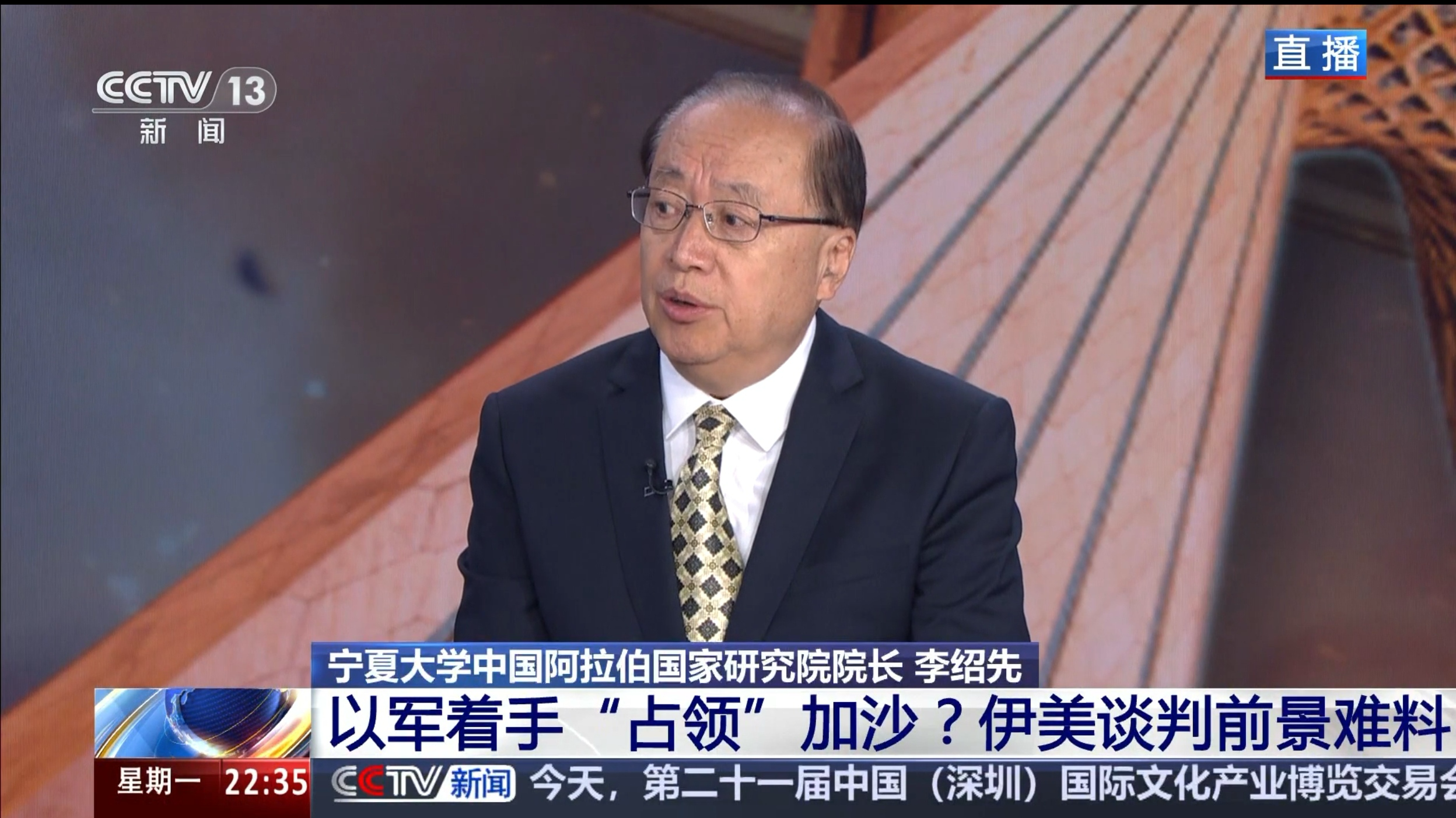 院长、中国中东学会顾问、教育部国别与区域研究专家委员会委员、中阿博览会顾问委员会主任委员李绍先接受了CCTV13《环球视线》栏目邀请参加访谈,就当前局势进行了分析和解读。