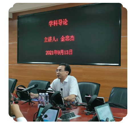 金忠杰老师以李振中老先生、朱威烈老先生和金忠杰老师自身的求学之路为切入点,讲述了三代阿语人的奋斗与传承,给予同学们“珍惜当下,莫问前程”的寄语,并从“三从、三立、三打”以及“三开”四个方面为同学们深度讲解“上大学意味着什么?”这一值得深思的问题,最后得出“打基础”这一看似简单实则充满实践光辉的答案。