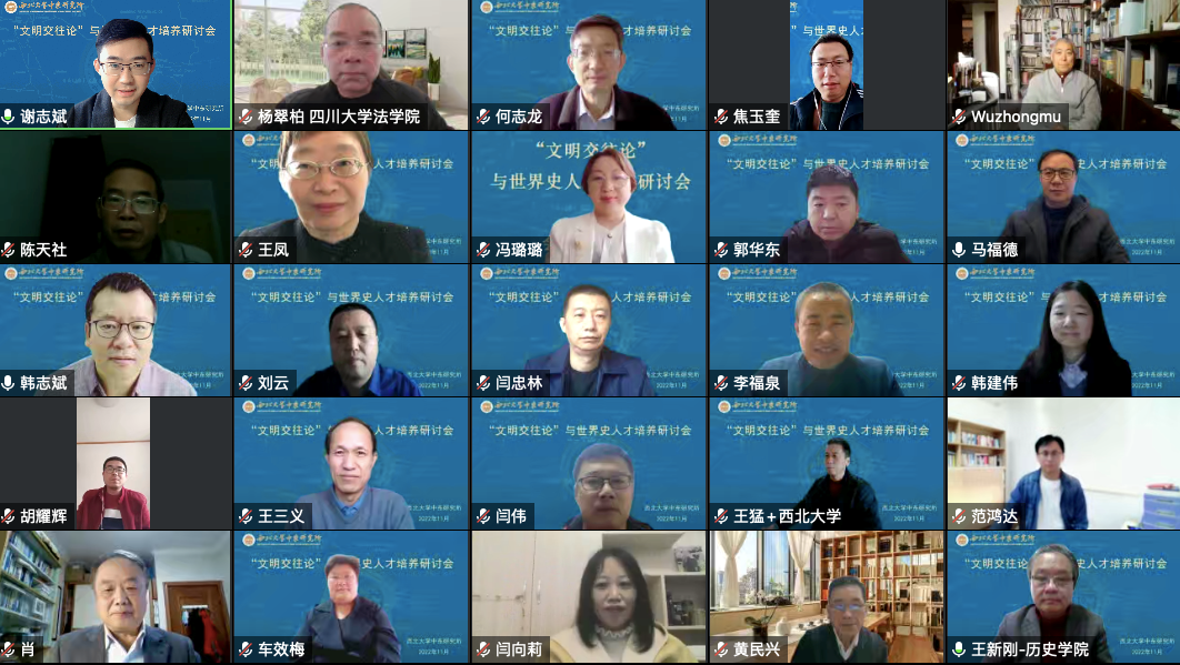 2022年11月12日,由西北大学中东研究所主办的“文明交往论”与世界史人才培养研讨会隆重举行。受疫情影响,本次研讨会为线上举行。吃瓜视频 (中国阿拉伯国家研究院)副院长冯璐璐教授受邀参加了此次研讨会。
