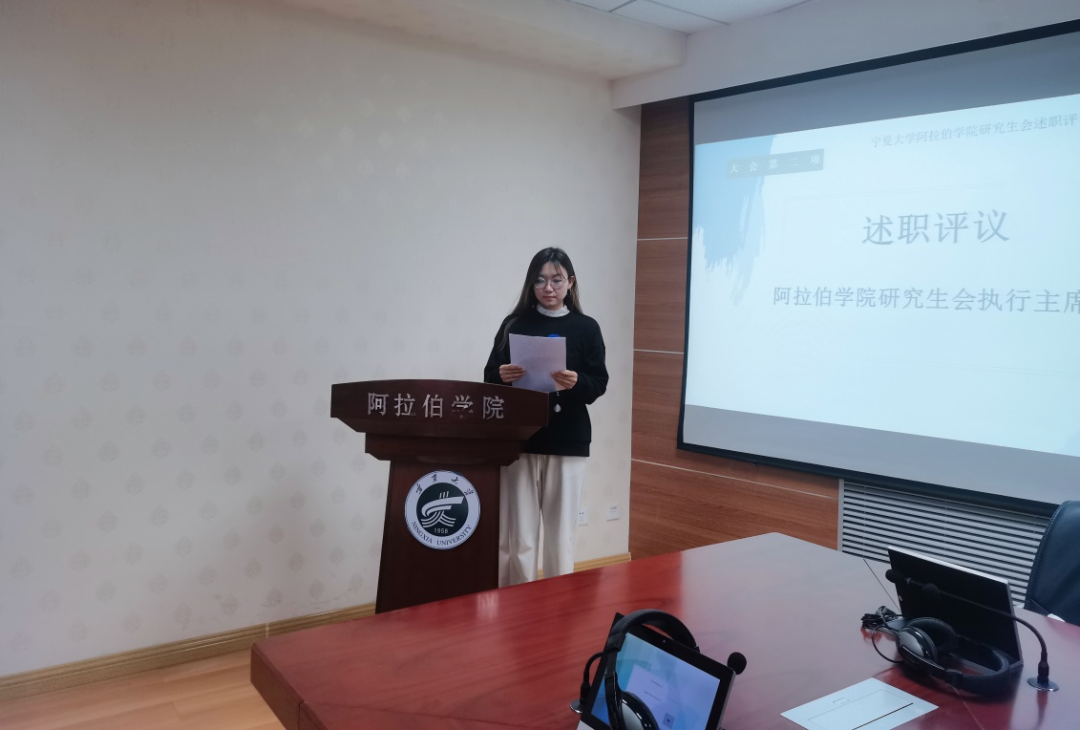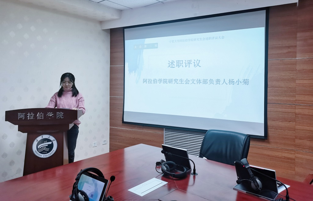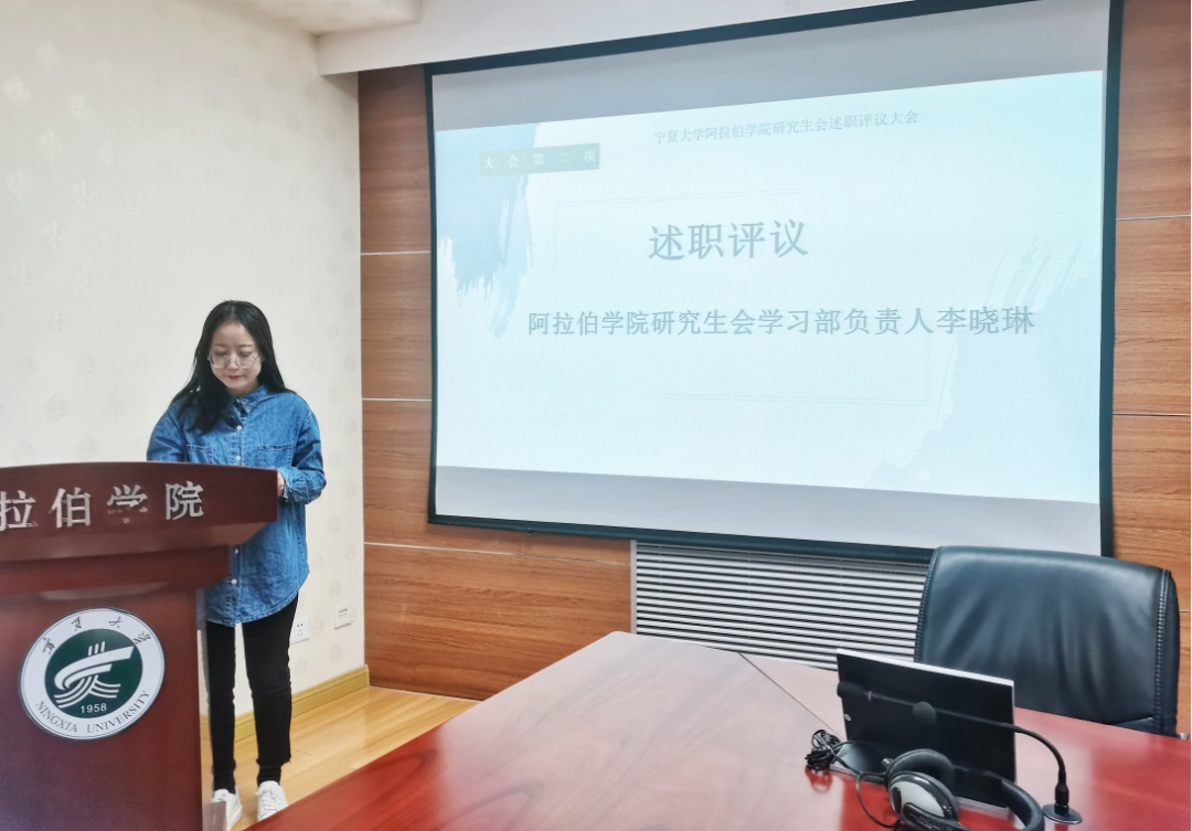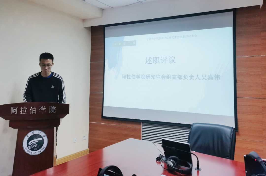 研究生会宣传部负责人吴嘉伟从思政教育、宣传教育、组织策划、学术交流等方面工作进行汇报。他表示,在宣传部及各部门的协作共同努力下,学院同学积极参与各项思政活动及阿拉伯语专业相关的各类全国比赛,并取得优异成绩。最后,吴嘉伟针对宣传工作中存在的困难进行了反思与总结,并期望学院研究生会全体成员能够群策群力,协助学院老师和同学完成各项工作,为学院的发展贡献自己的一份力量。