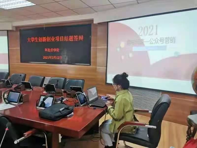 在文萃校区知行楼八楼报告厅举行大学生创新创业项目结题答辩。马立蓉、马珊珊、马洋洋老师担任答辩会评委,19位项目主持人进行答辩。