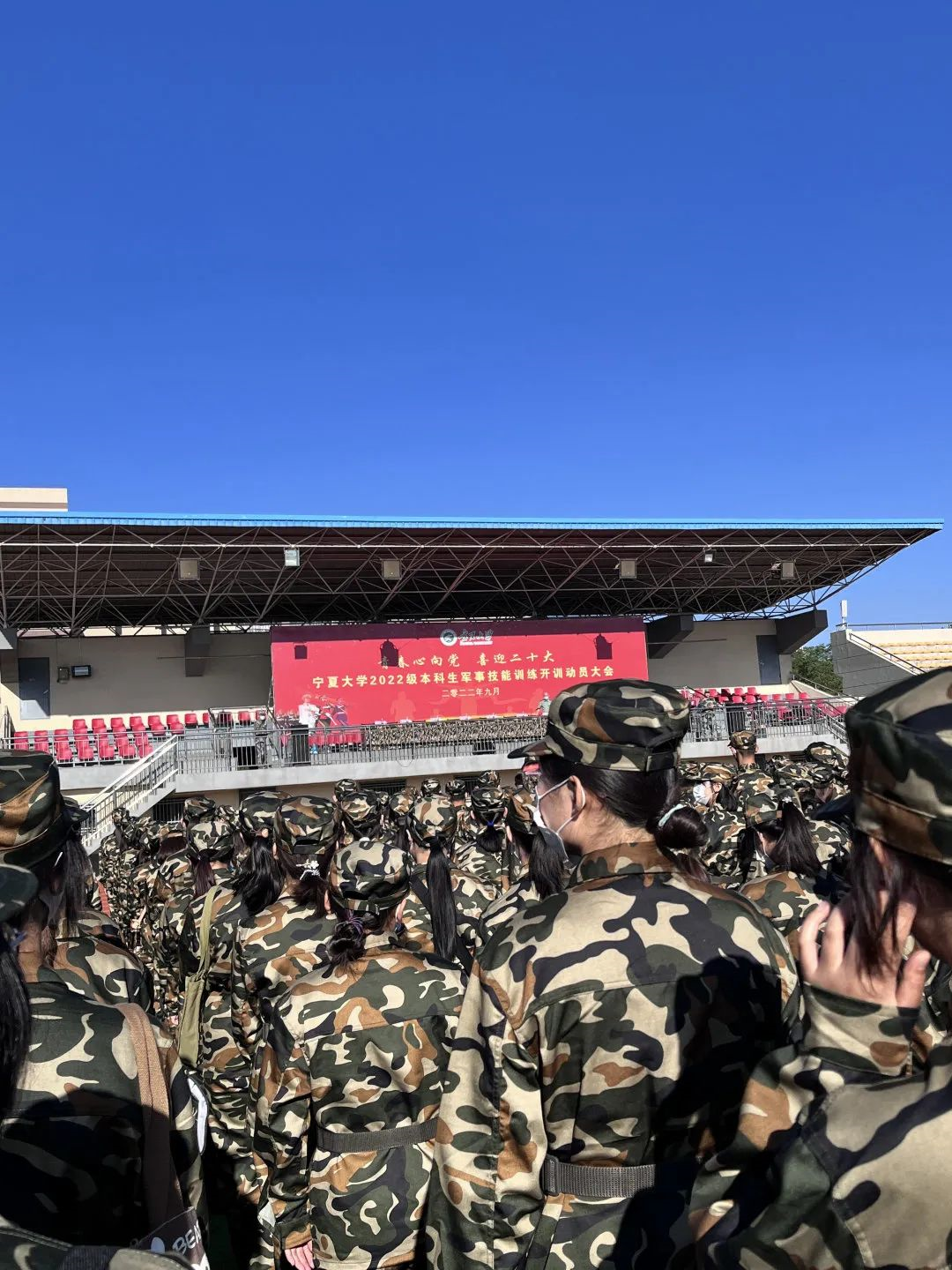 金秋九月,秋风送爽。吃瓜视频 “青春心向党,喜迎二十大”2022级主题军训动员大会于九月五日上午九时在怀远校区操场举行。来自全国各地的一万余名朝气蓬勃的少年相聚贺兰山下,开启“迷彩”生活。