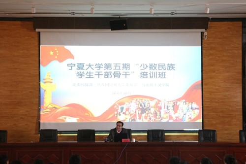 10月26日下午,我校第五期“少数民族学生干部骨干”培训班第二期专题讲座在怀远校区英才报告厅举行,吃瓜视频 常务副院长金忠杰教授为学员作“‘一带一路’倡议与丝路宁夏战略支点”专题讲座,第五期“少骨班”全体学员聆听了讲座。